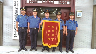 “我去蔣村街辦走親戚,在那里也發(fā)現(xiàn)了著裝整齊的城管隊員了!”8月,鄠邑區(qū)西街小學(xué)接孩子回家的家長們興高采烈地議論著。與西街小學(xué)一墻之隔的區(qū)城管局,此刻黨旗飄揚,格外耀眼。