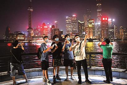 幾位大學(xué)生特地趕來(lái)見(jiàn)證暫停開(kāi)放景觀照明的浦江兩岸。