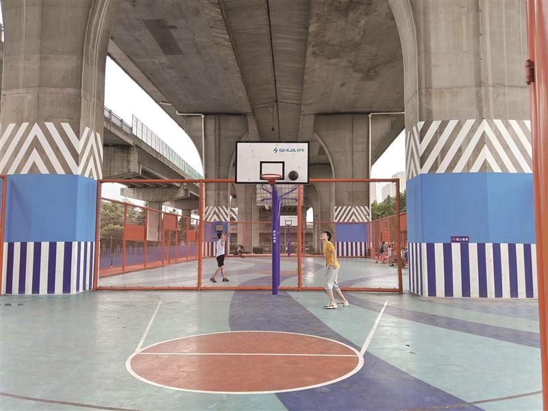“高架樂園”不僅配備了嶄新的籃球場、棋牌廣場、文化舞臺、滑板場、乒乓球場、健身步道等文體設(shè)施,還在環(huán)境裝飾上融入泰伯藝術(shù)元素、新吳文化特征。經(jīng)過一番裝扮、布置,橋下變成了充滿活力的多彩走廊,明亮熱鬧的體育健身、文娛交流場所?!案脑旌螅瑯蛳抡w環(huán)境提升了?!泵刻於嫉健案呒軜穲@”練習(xí)跳舞的市民陳松開心地告訴記者,“政府為百姓辦了一件實篤篤的大好事?!?/p>