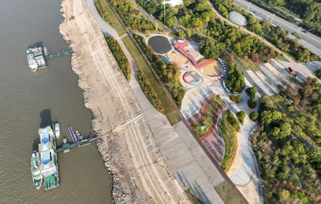 這得益于幾年前的武青堤堤防江灘綜合整治工程,將防洪功能與城市景觀自然融合,還江于民?!扒嗌浇瓰┎捎谩昂>d城市”建設(shè)理念?!蔽錆h生態(tài)環(huán)境設(shè)計研究院有限公司景觀設(shè)計師熊穎介紹,大量的植被以及緩坡、下沉式生態(tài)草溪和雨水花園,讓雨水通過景觀水系內(nèi)的植物根系生態(tài)過濾后,補充地下水。