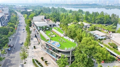 走出文創(chuàng)空間,大面積綠化扯人眼球?!案脑煨落佋O(shè)了草皮,點綴花草灌木,呈現(xiàn)出簡約現(xiàn)代的花園景觀。”謝陽說,等明年春暖花開時,這里將呈現(xiàn)出生機(jī)勃勃、五彩斑斕的視覺效果。