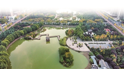 初冬時節(jié),興洛湖公園依舊景色如畫。