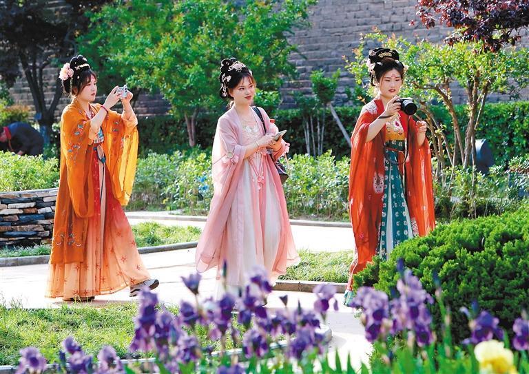 身著漢服的市民在環(huán)城公園拍照游覽(資料圖片) 記者 尚洪濤 攝
