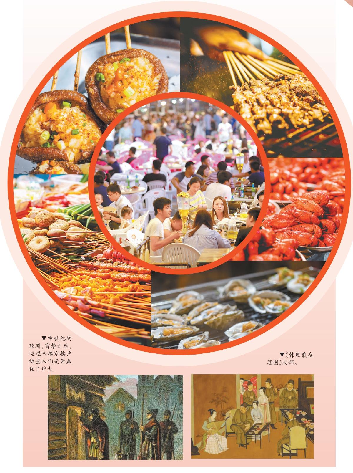 夏季的城市之夜格外熱鬧,夜市小吃攤的燈火次第點(diǎn)亮,一場(chǎng)屬于夜宵的狂歡也就此開(kāi)始?!吧钜故程谩弊钅軗嵛棵β盗艘惶斓默F(xiàn)代人,然而回到幾百年前,夜晚的街道是禁止踏入的,甚至閉門在家也要熄滅爐火、禁止進(jìn)食。從“宵禁”到“夜宵”的那些夜晚,記錄了人們戰(zhàn)勝黑暗恐懼、點(diǎn)亮城市生活的艱辛歷程。