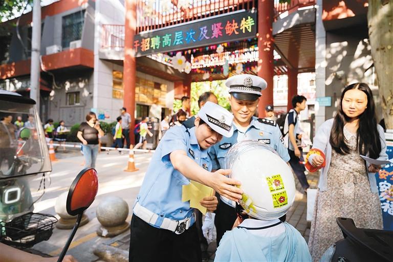 7月4日,臨放暑假前,碑林交警東大街中隊副中隊長尚劍、楊瑞帶領(lǐng)網(wǎng)格民警陳曉渭、韓雪,輔警劉洋走進(jìn)碑林區(qū)建國路小學(xué),為前來參加結(jié)業(yè)典禮的學(xué)生及家長贈送反光小紅花貼紙?!八湍阋欢湫〖t花”護(hù)學(xué)活動通過宣講、值守和獎勵機(jī)制形成閉環(huán),不僅大幅提升了“一盔一帶”的佩戴率,還通過一次次進(jìn)校園宣講,有效增強(qiáng)了校園周邊的交通安全守法意識。