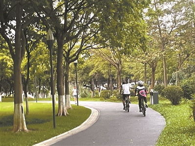 沿著香雪大道來(lái)到蘿崗濕地公園入口處,一株茂密的榕樹(shù)格外引人注目。記者沿著榕樹(shù)旁的綠道走進(jìn)濕地公園,道旁綠樹(shù)成蔭,蟲(chóng)鳴鳥(niǎo)鳴聲聲入耳,綠道上還有三三兩兩遛彎或跑步的市民,稍遠(yuǎn)處則是湍湍流淌的南崗河。鄒先生和朋友剛跑完一個(gè)來(lái)回,大汗淋漓地在路旁拉伸:“搬來(lái)附近大半年了,基本每天這個(gè)時(shí)段來(lái)跑一圈,沿著綠道跑上兩公里,空氣清新,十分舒服。”
