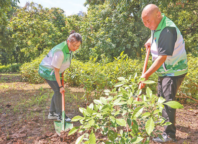 潘艷(左)在綠芽低碳森林參與公益植樹志愿服務(wù)活動。