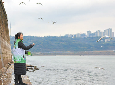 潘艷在“綠芽積分”小程序上報名后,參與紅嘴鷗保護志愿服務(wù)活動(攝于今年2月)。