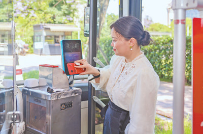 潘艷掃碼乘坐公交,可記錄80克碳減排量,獲得10積分。