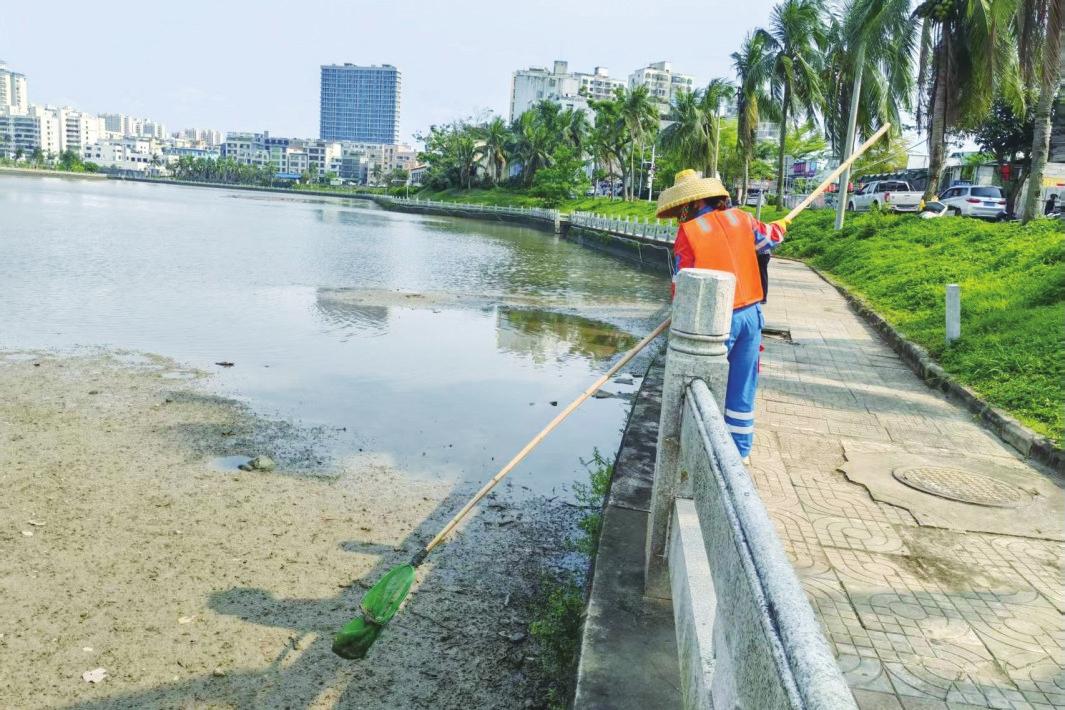 ??诰┉h(huán)公司加強水域保潔。張婷 攝