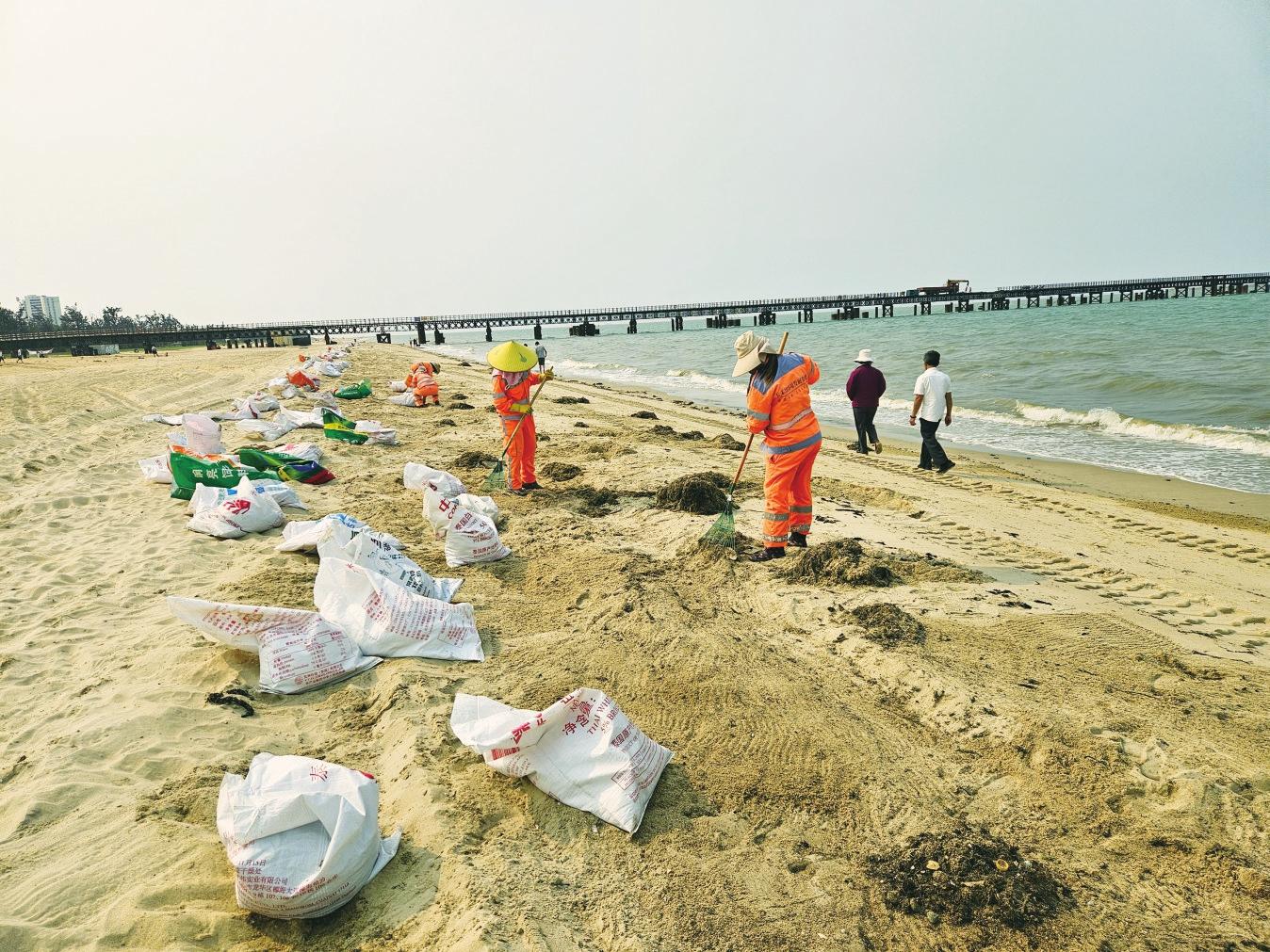 海口玉禾田公司提前清潔海灘營造整潔環(huán)境。廖志琴 攝
