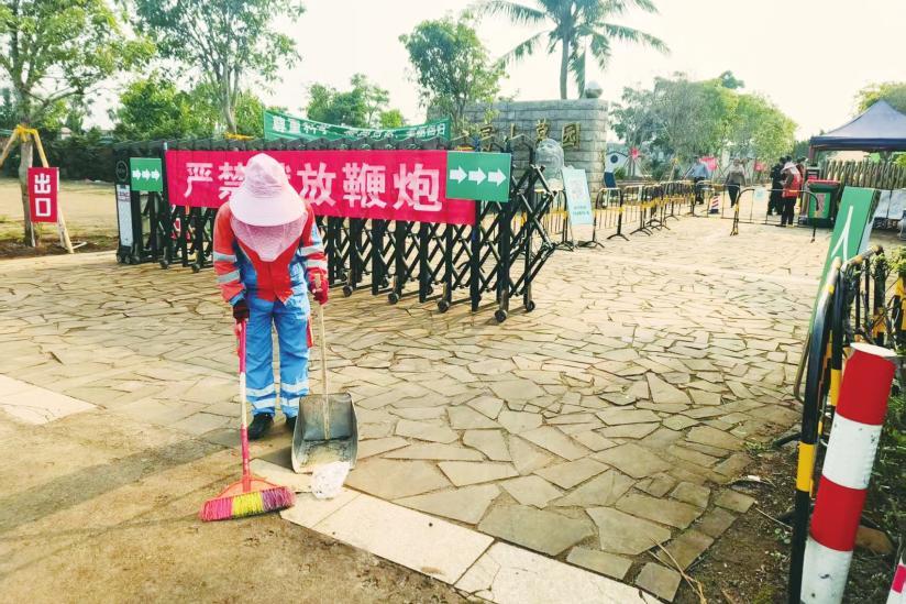 海口玉禾田公司增加保潔頻次守護“清明”。廖志琴 攝