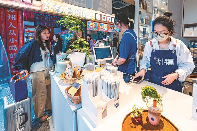6月8日,蘇州姑蘇區(qū)十全街,95后陳澄開的嘿啰面包店,門庭若市??恐姘焚|(zhì)和十全街人流量,小店開業(yè)兩年,生意持續(xù)紅火。闕明芬 攝 (視覺(jué)江蘇網(wǎng)供圖)