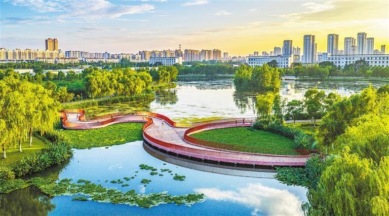 近日,雨后天晴,江蘇省宿遷市泗洪縣大樓街道尾水濕地公園美如畫卷。近年來,當?shù)卮罅ν七M生態(tài)環(huán)境治理,在污水處理廠旁建成尾水濕地公園,既凈化水質,又為市民打造休閑場所。張連華 攝(中經(jīng)視覺)
