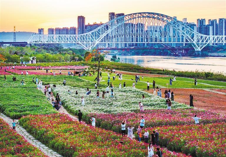 5月12日,廣西壯族自治區(qū)南寧市邕寧區(qū)江灣路三岸大橋綠道旁的格?;ㄊ㈤_,吸引眾多市民前來觀賞。曾祥忠攝(中經(jīng)視覺)