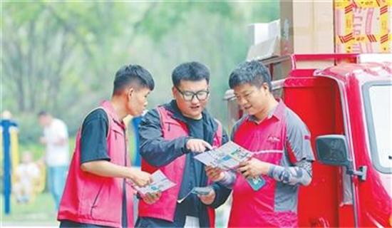 云南省曲靖市陸良縣同樂街道西華社區(qū),志愿者為快遞員送上法律服務(wù)。各地關(guān)心關(guān)愛新就業(yè)形態(tài)勞動者,通過送法律、送健康、送關(guān)愛等形式,提供多樣化暖心服務(wù)。楊文明 王勇攝影報道