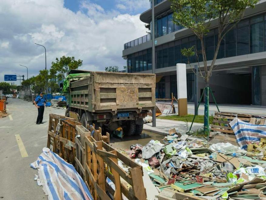 針對(duì)違規(guī)處置建筑垃圾行為,執(zhí)法人員開展定期巡查,強(qiáng)化運(yùn)輸監(jiān)管。7月,執(zhí)法人員巡查至鐵建·明賢府城市會(huì)客廳南側(cè)時(shí),發(fā)現(xiàn)一輛貨車正裝載著建筑垃圾行駛在道路上。因該型號(hào)貨車并不具備運(yùn)輸建筑垃圾的資格,執(zhí)法人員立即上前制止并引導(dǎo)司機(jī)至路邊詢問(wèn)。經(jīng)詢問(wèn),貨車司機(jī)劉某某涉嫌個(gè)人違法從事建筑垃圾運(yùn)輸,該行為違反了《寧波市建筑垃圾管理?xiàng)l例》。