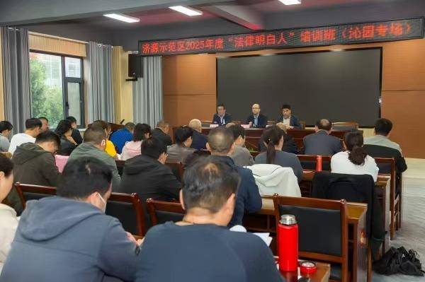 開班儀式上,沁園街道黨工委副書記、政法委員程江表示,“法律明白人”是基層法治建設的“關鍵力量”,需以“空杯心態(tài)”投入學習,將依法治理落實到依法化解矛盾、服務群眾的實際行動中。濟源示范區(qū)黨工委依法治區(qū)辦秘書科科長姚建忠指出,開展“法律明白人”培訓是建設法治社會、推動法治中國建設的必然要求,也是提升基層治理法治化水平、滿足群眾法治需求的現(xiàn)實需要。希望在場的“法律明白人”切實履行好政策法規(guī)宣傳、法律服務引導、基層矛盾調解、法治建設實踐等重要職責,真正成為群眾身邊“信得過、用得上”的法治帶頭人。