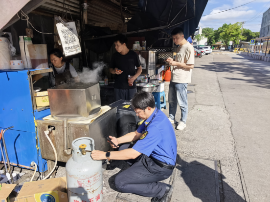 在整治過程中執(zhí)法人員對商鋪的燃?xì)馄康陌踩褂眠M(jìn)行詳細(xì)檢查,包括訂氣溯源,瓶口閥門,氣密安全等。執(zhí)法人員提醒商戶規(guī)范擺放物品,告知商鋪經(jīng)營線內(nèi)只能放置經(jīng)營物品,其他雜物不允許擺放。同時,對商家燃?xì)?、灶具的安全使用,餐飲環(huán)境衛(wèi)生、食品安全等進(jìn)行了全方位的細(xì)致檢查。為學(xué)生營造一個健康、安全的飲食環(huán)境。