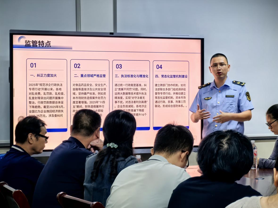 在面向鎮(zhèn)商會成員的專題講座中,王金華以《涉企處罰風(fēng)險全解析》為主題,深入剖析了企業(yè)在安全生產(chǎn)、消防管理、環(huán)境保護(hù)、知識產(chǎn)權(quán)、產(chǎn)品質(zhì)量、稅務(wù)、建設(shè)項目等八大“高危雷區(qū)”的常見風(fēng)險點,并通過某公司因未按規(guī)定進(jìn)行安全培訓(xùn)教育導(dǎo)致事故發(fā)生被重罰、某企業(yè)因危廢管理不規(guī)范面臨高額罰款和整改壓力等典型案例,對現(xiàn)場企業(yè)進(jìn)行警示教育與宣傳引導(dǎo)。
