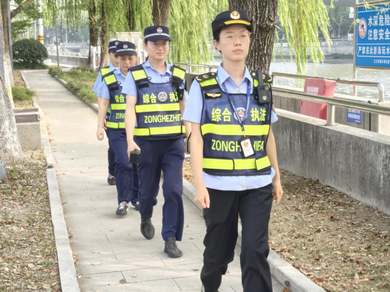 “阿姨,您沿著這條路直走,過橋左拐就到。”“大伯,咱這兒消防通道是生命通道,可不能停車呀!”這些溫情脈脈的對話,正是女子執(zhí)勤隊隊員的日常。她們既是行人眼中的“活地圖”,也是維護市容的“鐵娘子”。她們對群眾求助熱心回應,對法規(guī)底線寸步不讓。