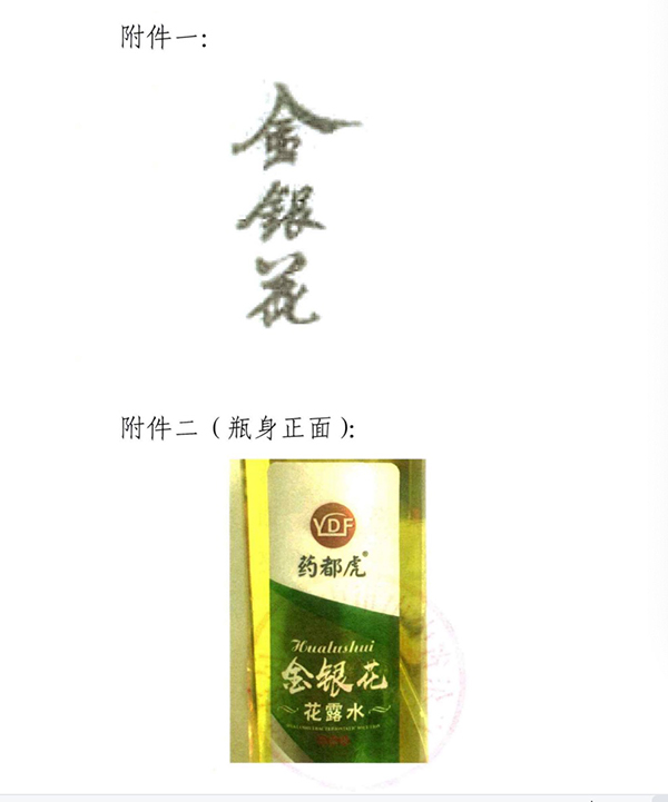 碧麗公司持有的603857號金銀花商標(附件一)與佰泰公司藥都虎牌金銀花花露水瓶身
