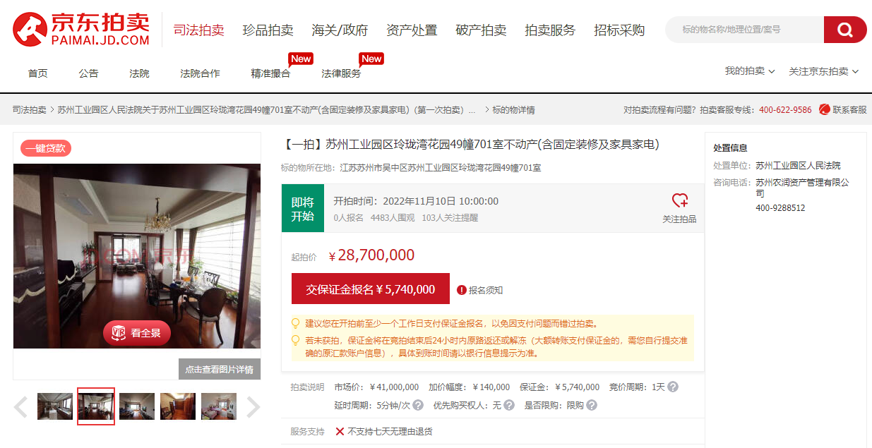 一年一度的京東11.11即將迎來高潮,蘇州兩級法院聯(lián)合京東拍賣開啟京東11.11蘇州法拍節(jié)活動,為廣大消費者帶來超高性價比的優(yōu)質(zhì)拍品,28萬起拍的頂級超跑寶馬i8、玲瓏灣豪華大平層、近50套蘇州優(yōu)質(zhì)住宅、上百件金銀玉石首飾等,滿足多元化的消費需求。同時蘇州兩級法院聯(lián)合京東拍賣,提供保證金保險、法拍房貸款、小件動產(chǎn)郵寄等特色服務(wù),最大限度為廣大競買人提供便利,為人民群眾辦實事。