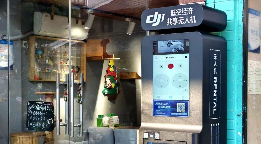 ▲4月10日,武漢曇華林步行街,商家用“DJ1”柜子出租大疆 DJI 無人機。 CFP