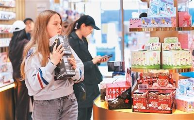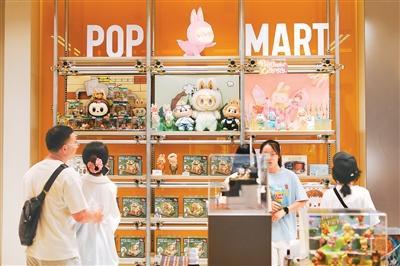 在重慶市渝中區(qū)來(lái)福士商場(chǎng)的泡泡瑪特門(mén)店,市民選購(gòu)相關(guān)產(chǎn)品。?孫凱芳攝(人民圖片)