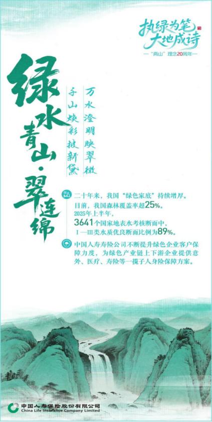 青山鋪卷,金融作筆;執(zhí)筆為綠,大地成詩。在奔赴“雙碳”目標(biāo)的壯闊征途上,中國(guó)人壽正以中國(guó)式ESG的生動(dòng)實(shí)踐,為全球可持續(xù)發(fā)展貢獻(xiàn)東方智慧,書寫著不負(fù)綠水青山的時(shí)代新篇。