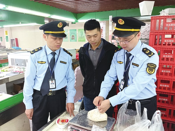 圖為該局執(zhí)法人員在一家超市對(duì)鮮面條進(jìn)行抽樣。孫建新 金聰 文/攝