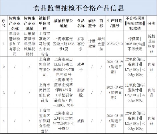 對(duì)上述抽檢中發(fā)現(xiàn)的不合格產(chǎn)品,上海市市場(chǎng)監(jiān)管局已要求相關(guān)區(qū)市場(chǎng)監(jiān)督管理局及時(shí)對(duì)不合格食品及其生產(chǎn)經(jīng)營(yíng)者進(jìn)行調(diào)查處理,依法查處違法行為,進(jìn)一步督促經(jīng)營(yíng)者履行法定義務(wù),并將相關(guān)情況記入食品生產(chǎn)經(jīng)營(yíng)者食品安全信用檔案。查處情況由經(jīng)營(yíng)者所在地負(fù)責(zé)案件查辦的區(qū)市場(chǎng)監(jiān)督管理局按規(guī)定公開。