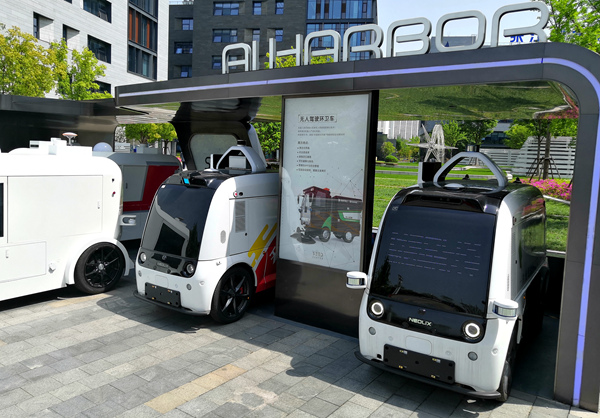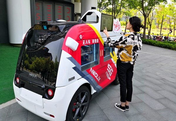 在張江人工智能島園區(qū)內(nèi),無人餐飲售賣車、無人環(huán)衛(wèi)車、無人快遞配送機(jī)器人、安防巡邏機(jī)器人等隨處可見,一系列無人自主提供服務(wù)的機(jī)器人圍繞在旁,讓人仿佛置身于科幻世界,而餐飲機(jī)器人售賣的茶葉蛋和熱豆?jié){又會將我們拉回現(xiàn)實世界。