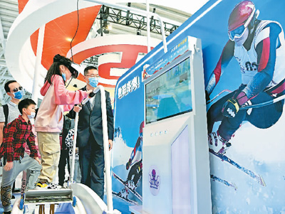 日前,福建省福州市馬尾區(qū)魁岐小學(xué)二年級學(xué)生在第四屆數(shù)字中國建設(shè)峰會數(shù)字成果展覽會上通過VR設(shè)備體驗(yàn)冬奧滑雪項(xiàng)目。 |