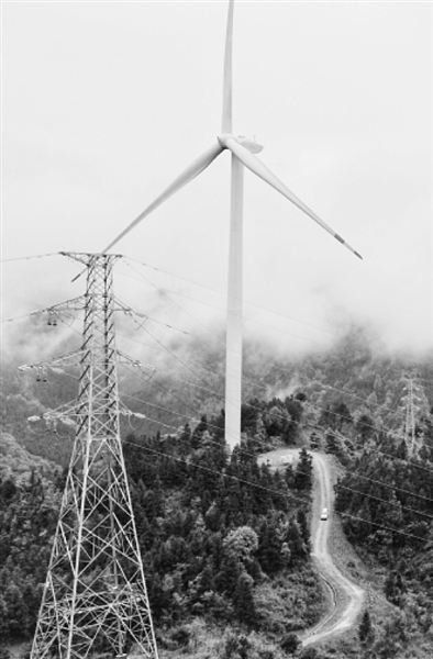中國(guó)南方電網(wǎng)有限責(zé)任公司做好新能源配套電網(wǎng)規(guī)劃建設(shè)和發(fā)電電源上網(wǎng)接入。日前,廣西白云嶺風(fēng)電場(chǎng)又一座風(fēng)力發(fā)電機(jī)即將建成。李志杰攝