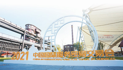 八月三十一日拍攝的二〇二一年中國國際服務(wù)貿(mào)易交易會首鋼園展區(qū)。 |