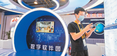 在國家會議中心綜合展區(qū),海南綜合形象館主要展示海南自貿(mào)港政策、旅游宣傳、重點領(lǐng)域和重點園區(qū)投資機遇等內(nèi)容。圖為9月1日,工作人員在海南展館內(nèi)調(diào)試設(shè)備。 |