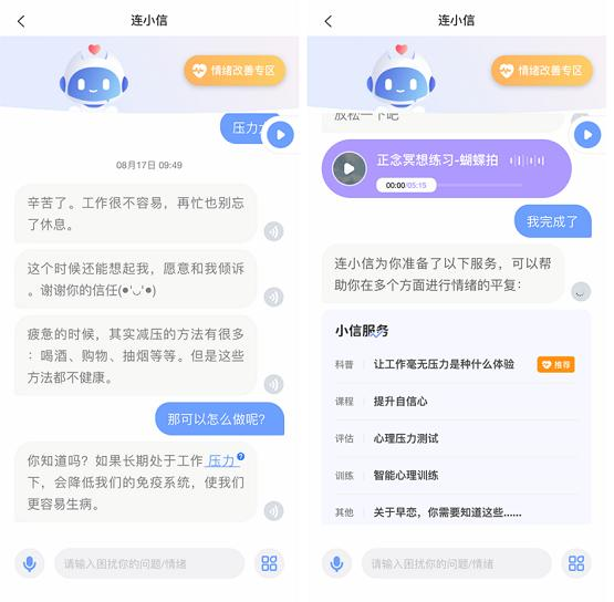截至目前,連信科技,沉淀了50+億心理樣本數(shù)據(jù),搭建2300+個認(rèn)知圖譜實體模型,整合2000+套心理干預(yù)組合技術(shù),擁有200+項知識產(chǎn)權(quán)及發(fā)明專利。技術(shù)能力和服務(wù)能力的層層疊加,讓連信科技實現(xiàn)服務(wù)用戶1500+萬人次,解決民眾困擾3000+萬次,干預(yù)有效率高達(dá)88.57%。