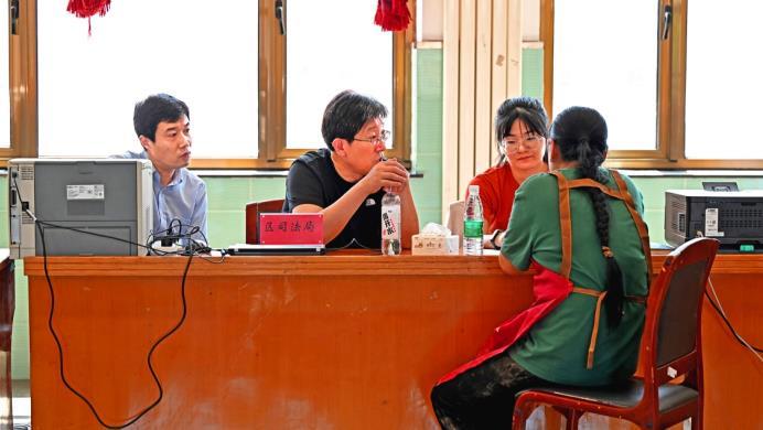 8月6日,北京市懷柔區(qū)司法局工作人員與律師一起走進(jìn)琉璃廟鎮(zhèn),為受災(zāi)群眾提供法律咨詢服務(wù)。法治日?qǐng)?bào)全媒體記者 楊晉峰 攝