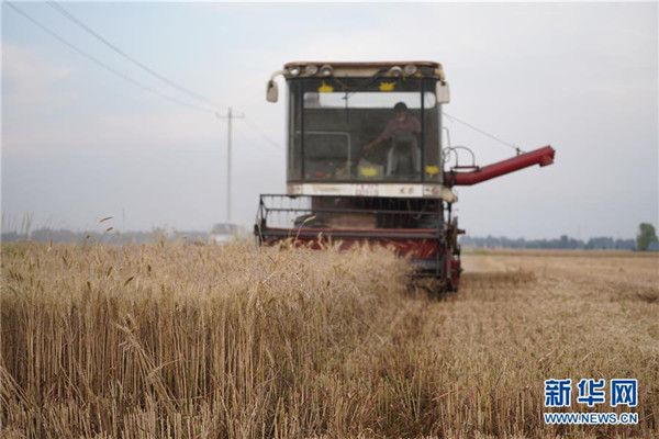 6月13日,雄安新區(qū)大王鎮(zhèn)小王村村民李有忠在收獲小麥。 近日,雄安新區(qū)小麥陸續(xù)成熟,當(dāng)?shù)卮迕駬屪マr(nóng)時(shí)進(jìn)行收獲。 新華社記者 邢廣利 攝