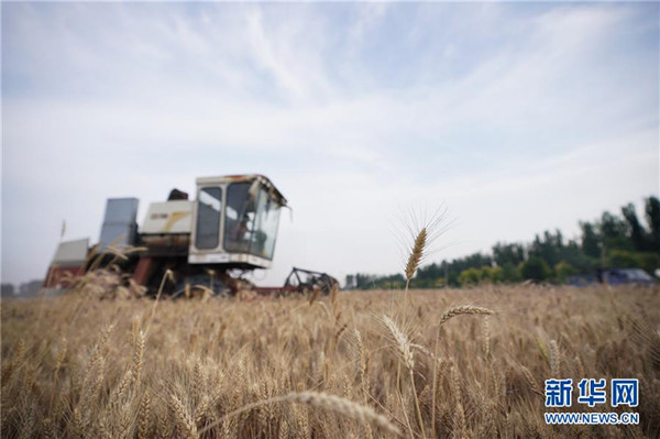 6月13日,雄安新區(qū)大王鎮(zhèn)小王村村民在收獲小麥。 近日,雄安新區(qū)小麥陸續(xù)成熟,當(dāng)?shù)卮迕駬屪マr(nóng)時(shí)進(jìn)行收獲。 新華社記者 朱旭東 攝