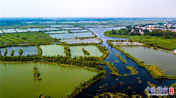 雄安新區(qū)設(shè)立后,為恢復(fù)白洋淀“華北之腎”的功能,構(gòu)建新區(qū)“藍(lán)綠交織、清新明亮、水城共融”的生態(tài)布局,新區(qū)要求將白洋淀生態(tài)水位提高至6.5m~7.0m,原有設(shè)計條件無法自流入淀,為此需要在引黃入冀補(bǔ)淀工程末端入淀口處新建揚(yáng)水泵站,即白洋淀引黃大樹劉泵站工程,確保黃河水在較高水位條件下也能順利入淀,有效維持淀區(qū)生態(tài)水位。圖為航拍白洋淀引黃大樹劉泵站工程現(xiàn)場。中國雄安官網(wǎng)記者馬夢迪 攝
