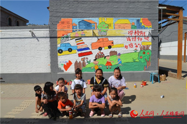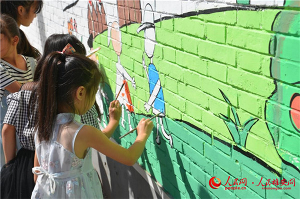 人民網(wǎng)雄安9月3日電 “安全童行 鄉(xiāng)繪美好”兒童友好鄉(xiāng)村公益彩繪活動日前在雄安新區(qū)雄縣北沙口鄉(xiāng)大莊村舉辦,村里的孩子們在來自北京的志愿者的帶領下,用畫筆描繪著充滿童趣的交通安全主題墻繪。