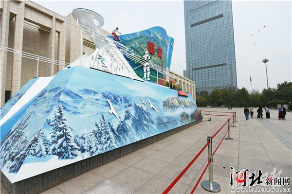 據(jù)介紹,彩車長15米、寬6米、高9.8米,重量接近31噸。彩車以“盛世雄安”為主題,主體藍圖展示的是雄安新區(qū)中軸區(qū)的美麗圖景。荷花環(huán)繞,飛鳥展翅,象征一個全新的未來之城展翅高飛、擁抱世界。藍圖前方是西柏坡紀念館造型,寓意“新中國從這里走來”。藍圖尾部自然過渡到2022年北京冬奧會場景。其中高高翹起的跳臺,正是北京2022年冬奧會國家跳臺滑雪中心“雪如意”。