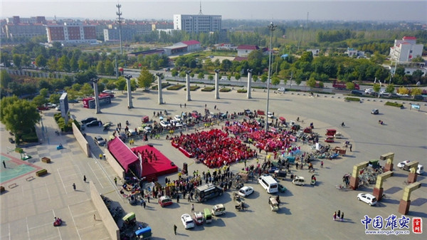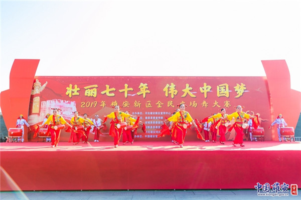 航拍“壯麗七十年 偉大中國夢”2019年雄安新區(qū)全民廣場舞大賽決賽現(xiàn)場。中國雄安官網(wǎng)記者馬夢迪 攝
