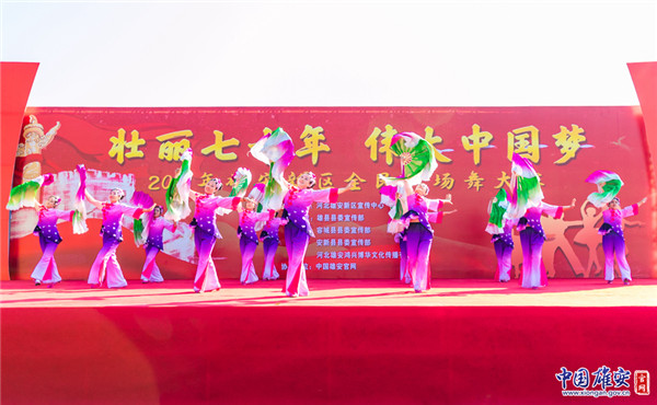 10月15日,“壯麗七十年 偉大中國夢”2019年雄安新區(qū)全民廣場舞大賽決賽在雄安新區(qū)容城縣三賢文化廣場舉辦。圖為大賽現(xiàn)場。中國雄安官網(wǎng)記者毛鶴然 攝