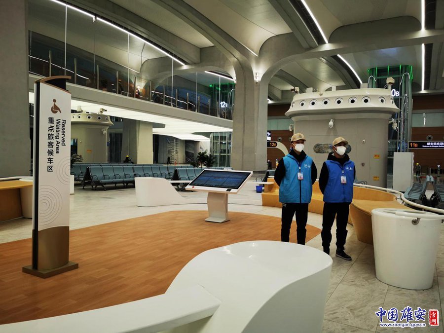 12月27日,志愿者在雄安站迎接旅客進站。劉東堯 攝