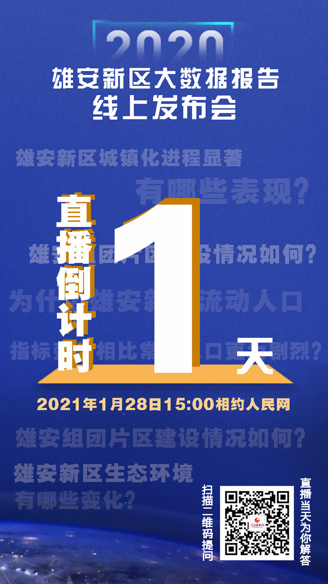 人民網(wǎng)雄安1月27日電 明天,將有關(guān)于雄安的重要消息發(fā)布?!拔磥?lái)之城 拔節(jié)生長(zhǎng):大數(shù)據(jù)見(jiàn)證雄安之變”雄安新區(qū)2020年大數(shù)據(jù)報(bào)告線上發(fā)布會(huì)定于28日下午3點(diǎn),在人民網(wǎng)演播廳舉行。發(fā)布會(huì)上,百度商業(yè)智能實(shí)驗(yàn)室專家將重點(diǎn)從生態(tài)環(huán)境變化、基建成果、產(chǎn)業(yè)發(fā)展、人口變化和熱門(mén)關(guān)注度等角度對(duì)雄安新區(qū)2020年大數(shù)據(jù)報(bào)告進(jìn)行解讀,用數(shù)據(jù)幫助你客觀、全面了解雄安新區(qū)過(guò)去一年的建設(shè)發(fā)展內(nèi)容和成果。屆時(shí),人民網(wǎng)將全程直播,敬請(qǐng)關(guān)注!