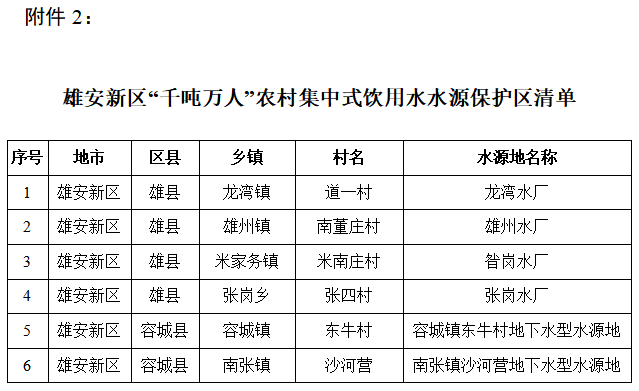 2.雄安新區(qū)“千噸萬人”農(nóng)村集中式飲用水水源保護(hù)區(qū)清單