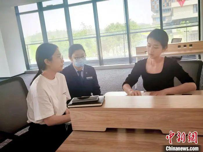 圖為雄安新區(qū)政務服務中心幫辦代辦人員(左一、左二)為企業(yè)提供上門服務,助力企業(yè)快速落戶雄安新區(qū)。雄安新區(qū)政務服務中心供圖